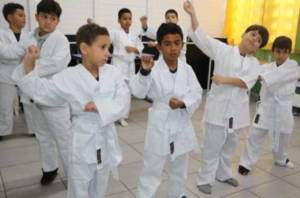 Os alunos que fazem aula de caratê, pelo Projeto Integrar Arte e Vida, na Unidade [...]